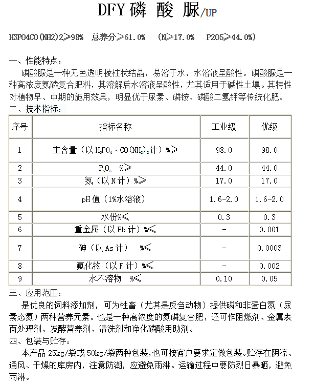 濰坊大富源環(huán)保科技有限公司位于美麗的世界風(fēng)箏之都—山東濰坊。本公司專業(yè)生產(chǎn)經(jīng)營磷酸二氫鉀、晶體磷酸一銨、晶體磷酸二銨、硝酸鉀、磷酸脲、農(nóng)業(yè)級(jí)聚磷酸銨、阻燃級(jí)聚磷酸銨、大量元素水溶性肥料等,產(chǎn)品品種多、規(guī)格齊,質(zhì)量長期穩(wěn)定可靠,產(chǎn)品投放市場以來,深受新老客戶的好評(píng)!在企業(yè)多年的生產(chǎn)實(shí)踐中,積累了豐富的產(chǎn)品經(jīng)驗(yàn)和市場經(jīng)驗(yàn),憑借優(yōu)越的產(chǎn)品質(zhì)量,先進(jìn)的經(jīng)營理念和良好的企業(yè)形象,贏得了廣大用戶的...